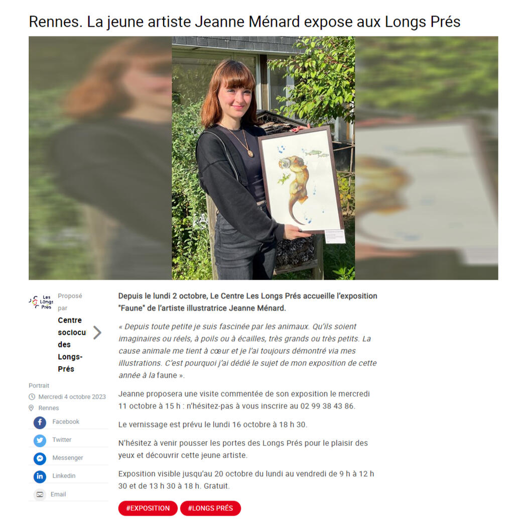Je m’appelle Jeanne Ménard, je suis une artiste illustratrice basée autour de Rennes. Le coeur de mon travail repose autour de la représentation d'animaux et de créatures.